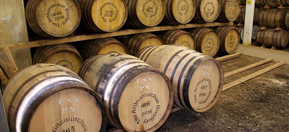 Ardnamurchan matures in Bourbon casks from Woodford Reserve as well as Pedro Ximenez and Oloroso hogsheads. The warehouses also contain some Spanish and American oak sherry butts. The distillery aims for full-term maturation in a single cask, eschewing the trend for cask finishing.